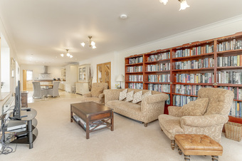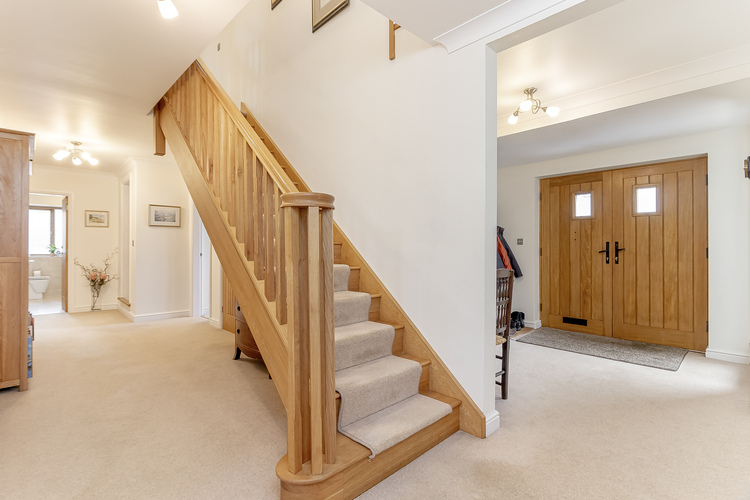 At first floor, there is a spacious landing with a door leading to an east facing balcony. Guest cloakroom WC. A main feature of Oversale is the first floor lounge that offers an open fire and views to 2 sides and a balcony that is South facing which overlooks the formal lawns and Paddock.