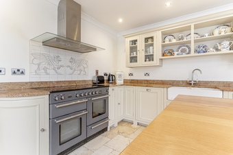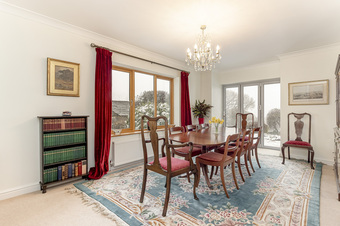 There is a separate utility room with Belfast sink and storage cupboards with space and plumbing for washing machine and dryer and is a useful drying room, leading to a boiler room with Worcester oil fired floor mounted boiler. From the reception hall there is both a dining room and study together with a ground floor bedroom suite which offers a Jack and Jill arrangement as the guest cloakroom for the main house.