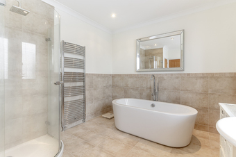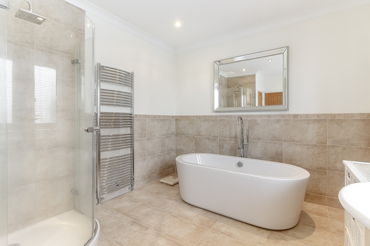 There is a Master bedroom suite with East facing views, ensuite bathroom with shower and bath, a walk-in dressing room. Additionally, there are two further double bedrooms one with fitted wardrobes and a spacious house bathroom with both deep bath and shower stall.