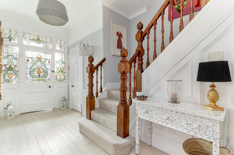 On the first floor the landing leads to the master bedroom with bay window, second double bedroom with fitted wardrobes, fifth bedroom which is currently used as an office and a modern house bathroom with walk in shower, separate bath, w/c and hand basin.