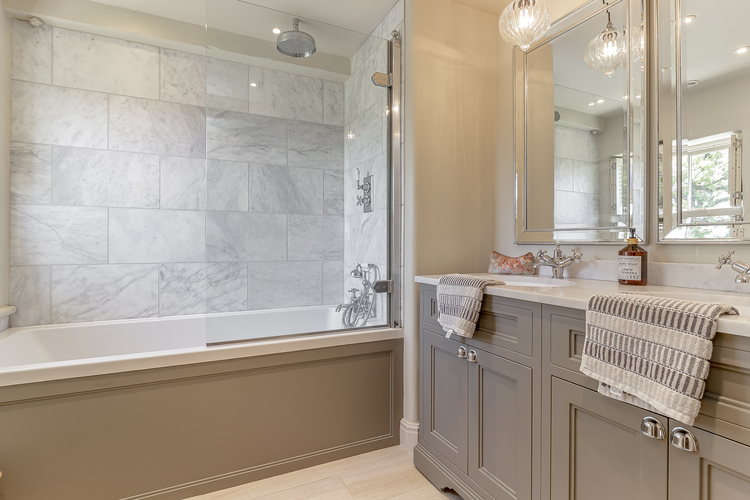 Two further double bedrooms, each with built-in wardrobes, are served by a high-spec house shower room, complete with a walk-in rainfall shower, WC, and hand basin.