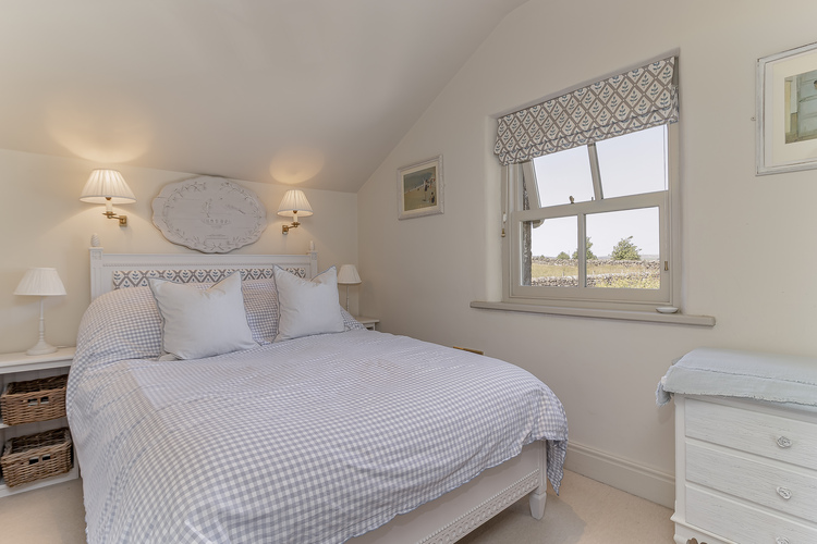 The principal bedroom enjoys a dual aspect, showcasing valley views and countryside charm. It includes a luxurious en-suite bathroom with a shower over bath, WC, and a double vanity unit.