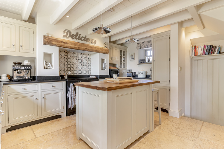 The stunning breakfast kitchen is the heart of the home, featuring a Rangemaster dual-fuel cooker, fully integrated appliances, and extensive fitted cabinetry. The kitchen flows seamlessly into a coordinated boot room and a stylish guest cloakroom/WC, which has its own external access.