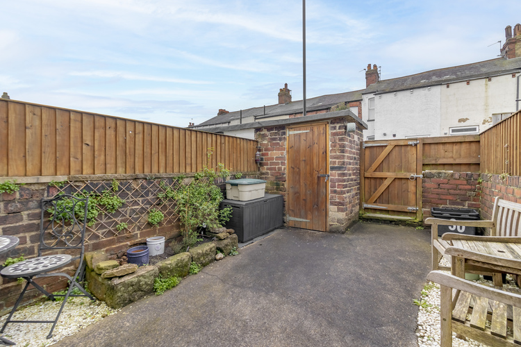 Outside to the front of the property there is a small hedge and at the rear an enclosed private garden area with useful storage shed and pleasant sitting areas that face West