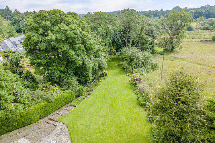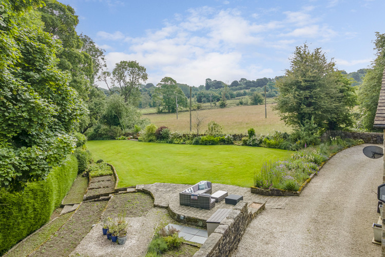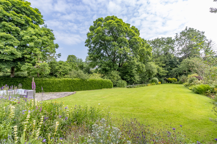 Outside the electric gate opens onto the sweeping graveled driveway that leads round the property to the parking area for multiple vehicles and to the garage. The gardens include a large lawn, and numerous seating areas perfect for entertaining. There are well-stocked flower beds and vegetable gardens. There is also a two-acre paddock directly over the road ideal for those with ponies or as a great exercise area for a dog.