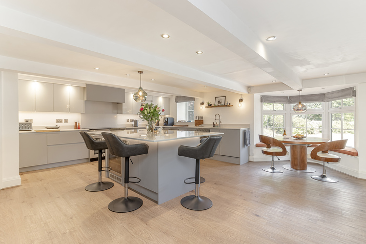 Beck House’s living accommodation comprises; A spacious dining room with a roof lantern and bi-folding doors leading out into the patio overlooking the well-maintained gardens perfect for entertaining, a spacious lounge with a feature wood burning stove and double doors leading out to the garden, a inner hall then leads to the stunning breakfast kitchen with modern fitted units, quartz worktops, central island with breakfast bar, Range cooker and space for an American fridge/freezer and there is a feature window seat which offers another dining area, separate utility/boot room. From the dining hall a doorway leads to the large playroom, study/home office and a downstairs w/c.